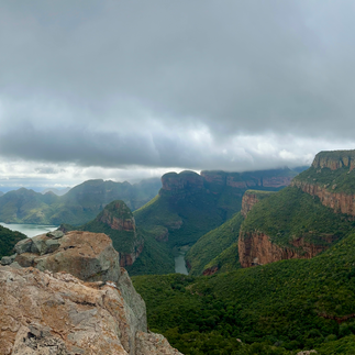 Blyde is the 3rd largest canyon in the world, but so different from the Grand Canyon in ecosystem. While formed by volcanic activity and erosion of the river system, it is greener than green can be and has a highest amount of rainfall per year of any South African location. It is also 30 degrees cooler than Kruger so layers are needed. We stopped at two locations on the way to camp including the Luck Potholes and Three Rondevaals lookouts. The Potholes are like Utah antelope canyon meets Yosemites Angels falls. The bridge system around it is super safe and easy to navigate, even with a wheelchair if needed. Local artisans line the parking lot, so here is the place to get your comfy elephant print pants or carved and beaded animal portraits.