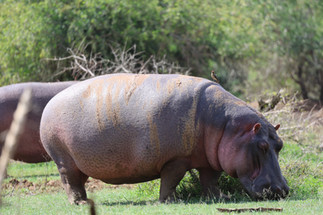 We saw hippos in water and grazing and since they are my favorite, I sat in a safe place for a long time watching these amazing sausages with legs. I’ve always been fascinated by how such an odd looking pudgy animal could be one of the most dangerous animals in the world not only to humans, but also hippo babies if the dad feels threatened by his cub. He will gore the crap out of the thing. They were incredibly fast at 30k ground speed max, and they swiftly bounce through the water if needed, making odd laughing noises as they bathe. We also learned that hippos rest in pods, which means they make an overlapping circle with the larger ones only touching the ground not unlike a floating hippo raft. The