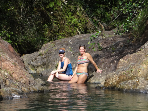 Next we headed into the forest to find a swimming hole at the end of a short hike. There were surprisingly few bugs in the forest at all and the climate was very pleasant in February. The blue-hued swimming hole was about 20 minutes in.